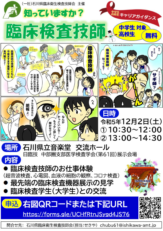 問合せ先:石川県臨床衛生検査技師会(担当:せきや)chubu61@ishikawa-amt.jp